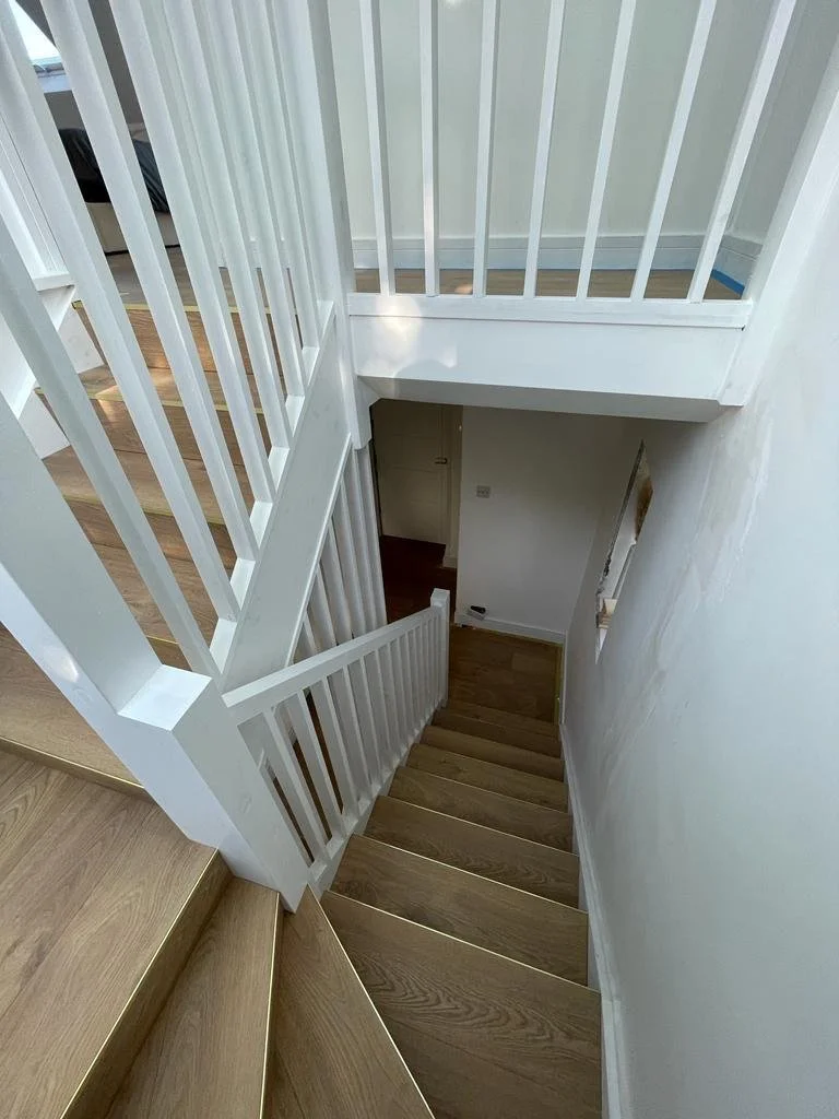 The existing roof was removed to create a new room in the roof through a contemporary loft conversion, adding valuable accommodation to the upper level. This approach maximised the property's potential within the existing footprint. The ground floor and first floor layouts were completely reconfigured to create better flow and functionality. The ground floor now features a new open-plan kitchen, living, and dining area that forms the social heart of the home, complemented by a separate snug room for quieter family activities.